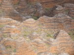 The next day was a lot more driving. We were on the main highway for about another 3.5 hours, passing just 2 roadhouses. Finally we turned off on to a bone-shaking very corrugated road. It took 2.5 hours to drive the 53km to the visitor centre for the Purnululu National Park which contains the Bungle Bungles, a series of red striped dome-shaped hills covering a huge area. The visitor centre was as good as the American ones and we got an excellent map.