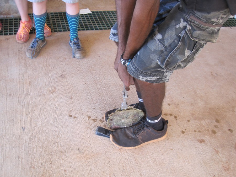 Opening an oyster at Cygnet Bay Pearl Farm