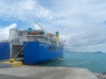 There was a long queue at the ferry – and no food. The palolo fishermen were there and told us that most of the queue did not have a reservation and so we were sent ahead to drive on. The fishermen disappeared into a business class lounge which we had not realised existed. We sat on the plastic seats again. The TV was showing a rugby match. The only food for sale was pot noodles. Would lunch today be only the biscuits which we had with us?