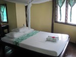After that we were installed in our fale, a Samoan thatched hut which had one double and two single beds with mosquito nets, and hibiscus flowers laid on the towels. The attached shower room was partly open to the sky. Many fales are totally opensided but we preferred a lockable room. We were glad it was also waterproofed as there were some heavy rainstorms while we were there.